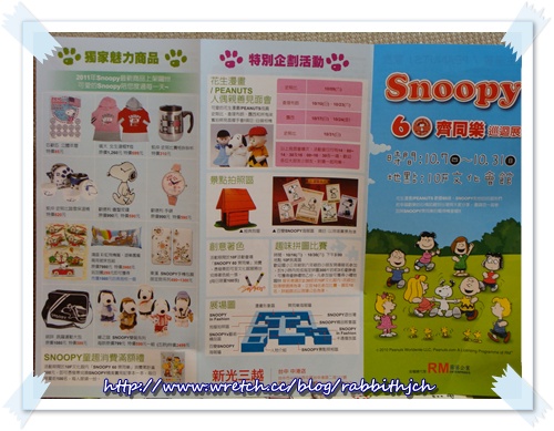 2010年,是SNOOPY誕生60週年喔!在台灣,就有個「SNOOPY 60齊同樂」的巡迴展,只在台北、台中(10.7~10.31)和高雄展出。我們怎能錯過呢